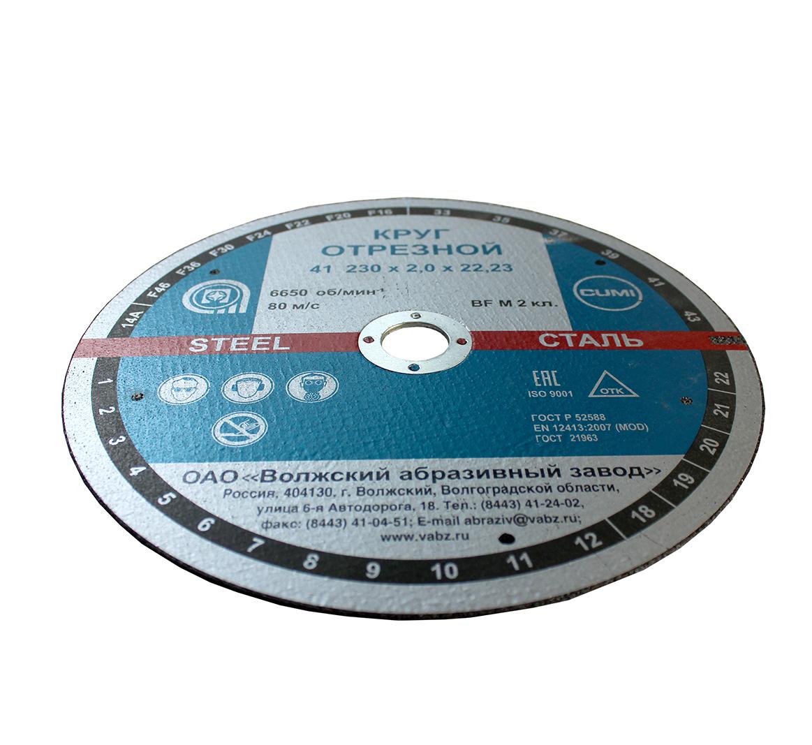 Применяется на ручных углошлифовальных машинах (болгарках). Выбор диаметра и толщины круга зависит от параметров материала, предназначенного для реза. Марка – ВАЗ.